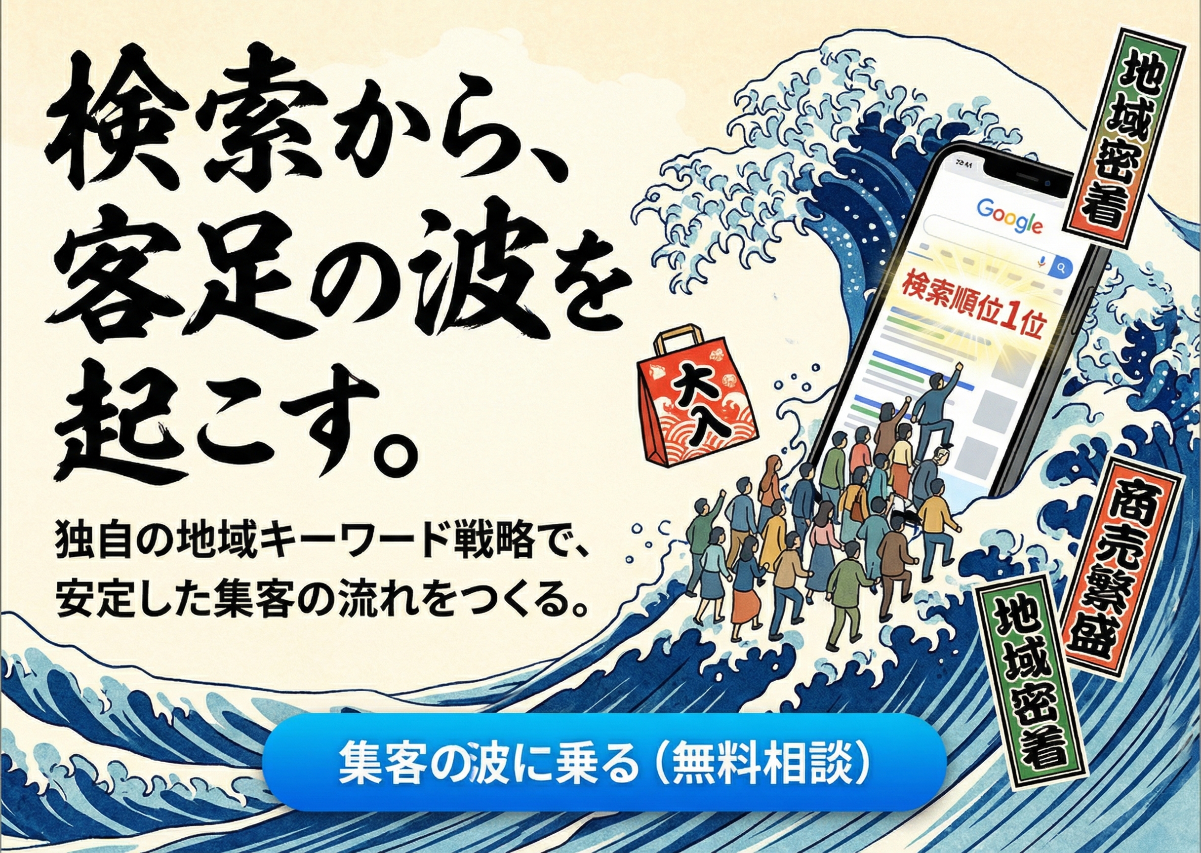 これは、「地域名+業種」「駅名+サービス名」といったキーワードで検索した、来店意欲の非常に高いお客様に、あなたのお店をアピールするための強力なWeb集客手法です。